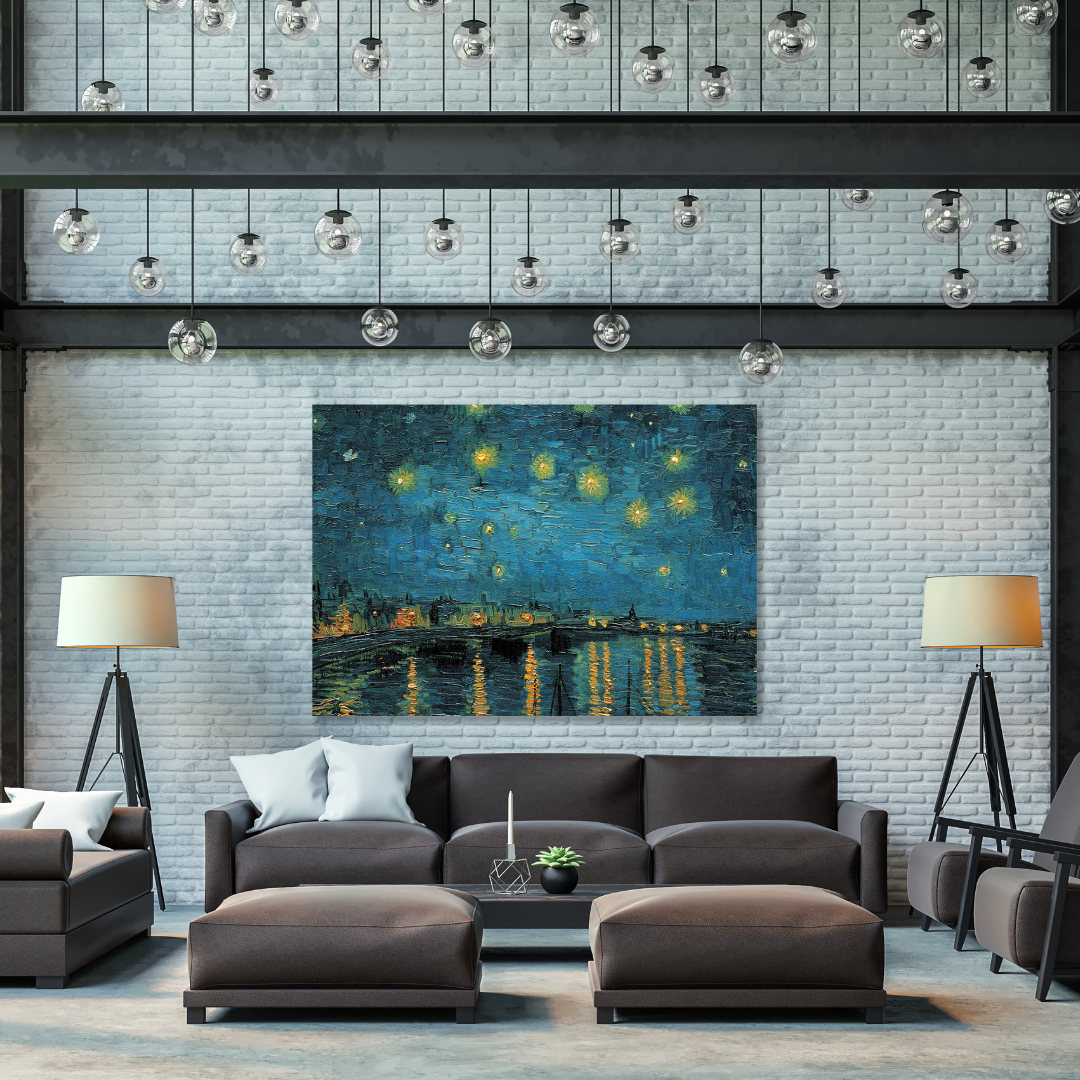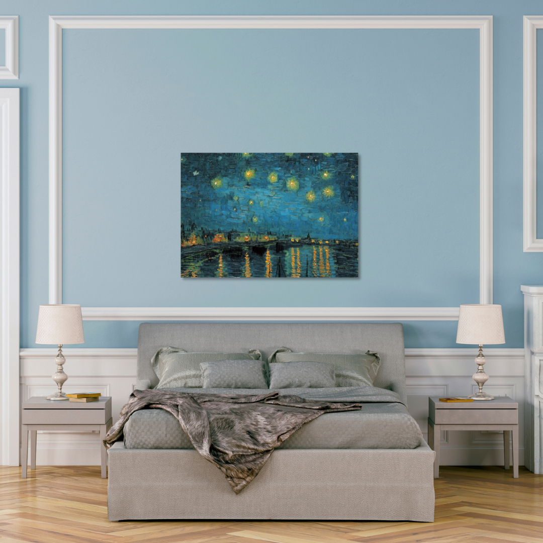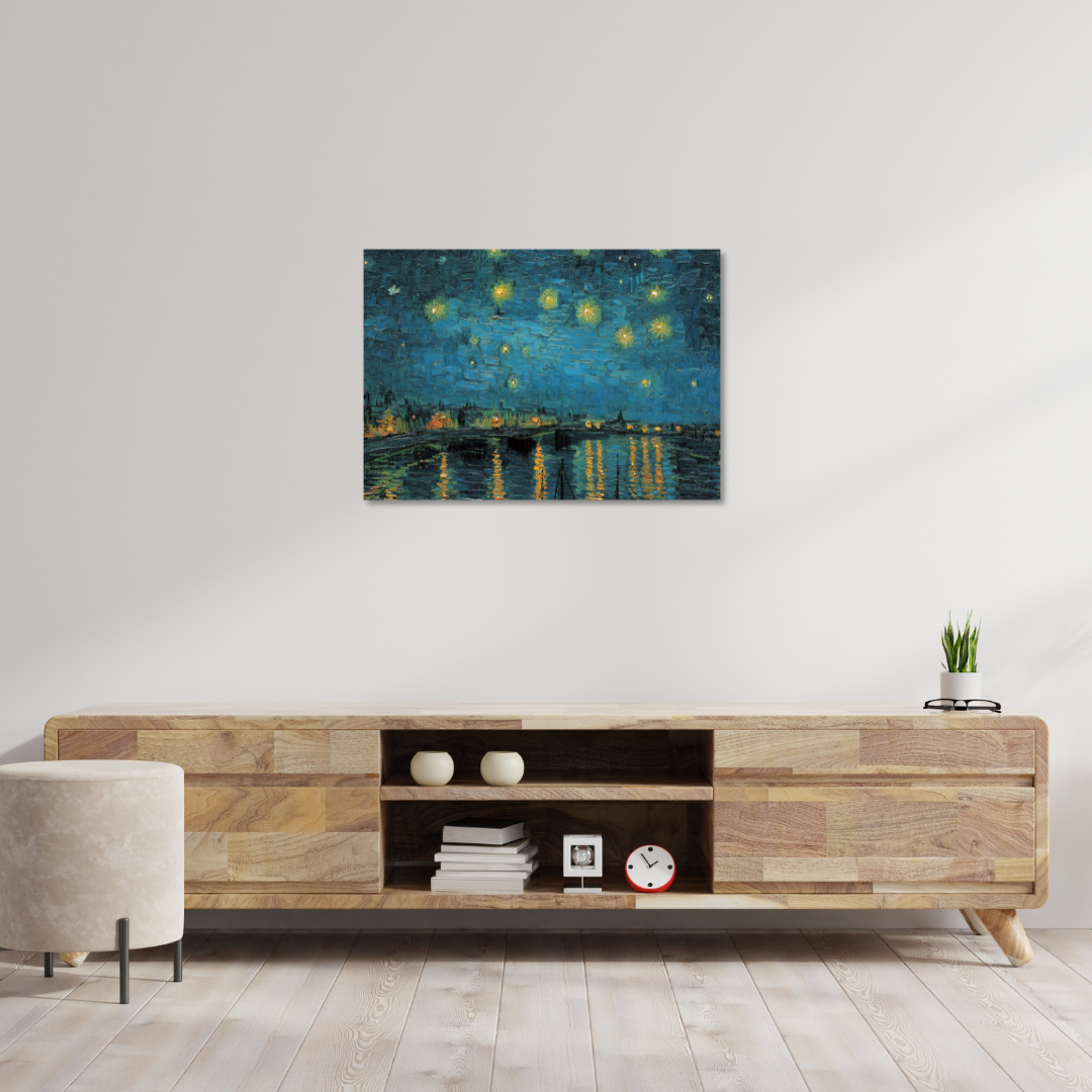 Deze speciale reproductie van de Sterrenacht boven de Rhône van Vincent van Gogh is op een aluminium diabond plaat gedrukt en van zeer hoogwaardige kwaliteit. "De Sterrennacht boven de Rhône" is een beroemd schilderij van Vincent van Gogh, dat hij in 1888 schilderde. Het toont de rivier de Rhône bij nacht, met een sterrenhemel die opvallend is in zijn kenmerkende stijl. Het afdrukken van dit meesterwerk op een wandkleed van zeer hoge kwaliteit is een geweldige manier om de schoonheid en de sfeer van het originele schilderij in je huis te brengen.