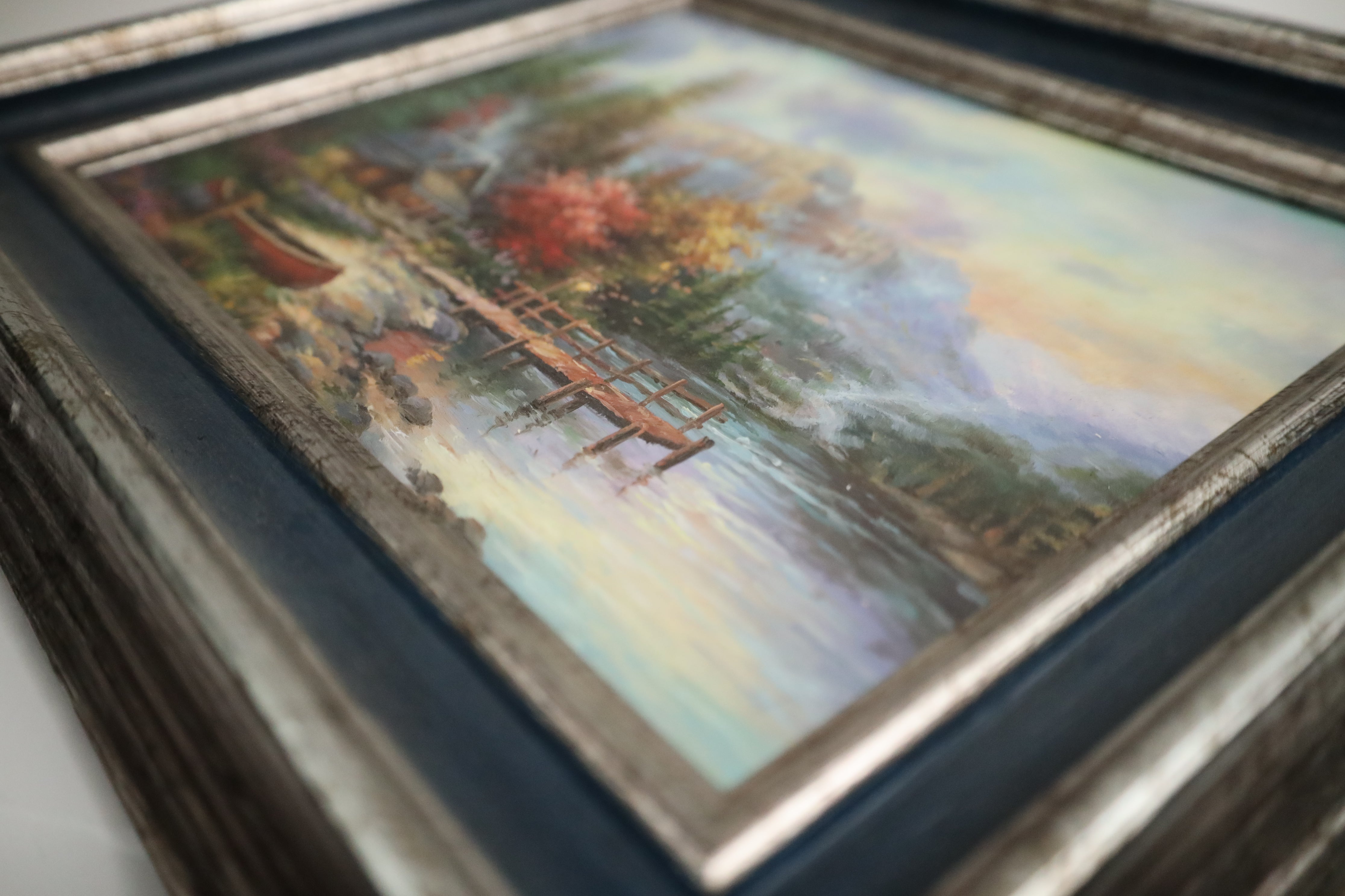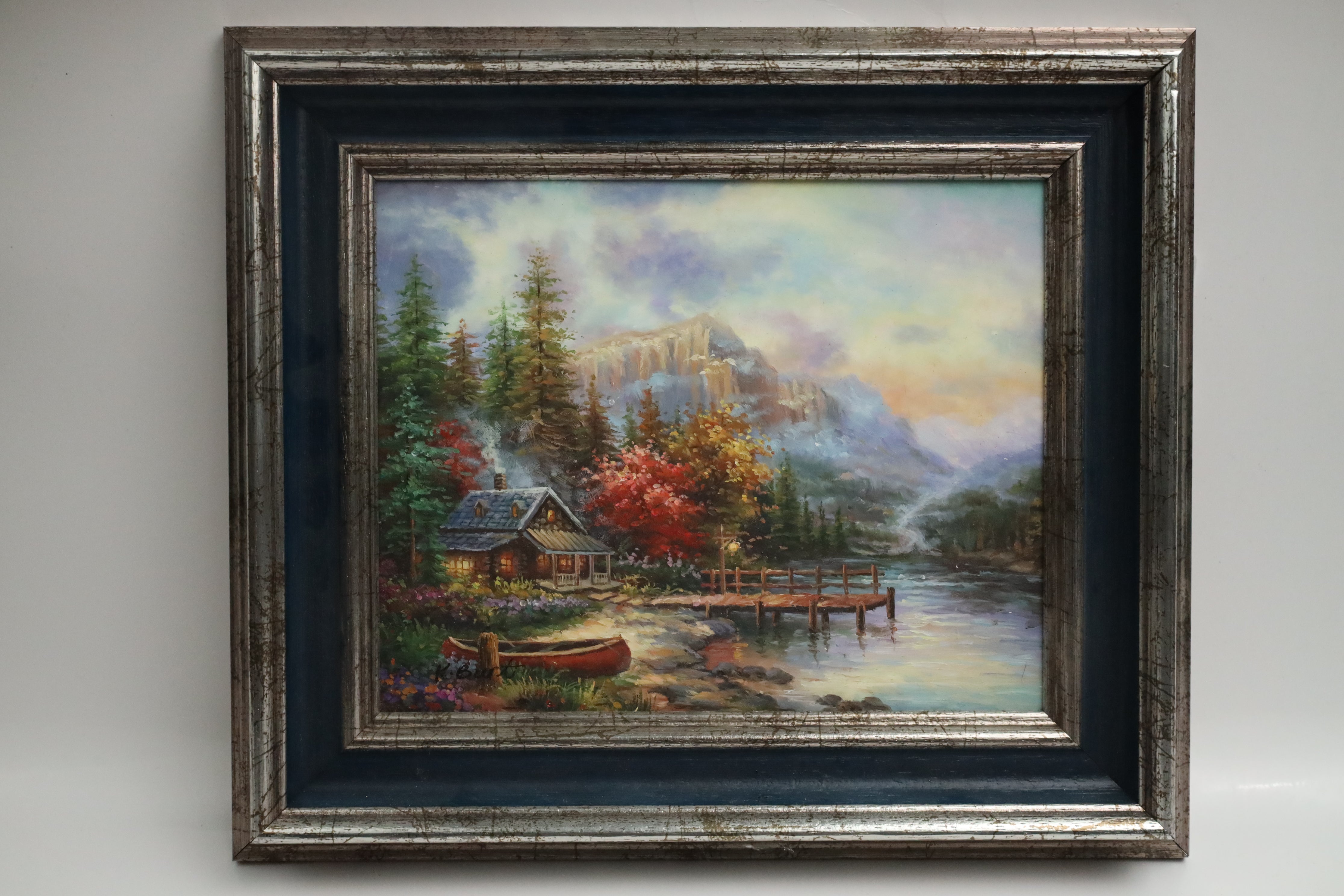 Handgeschilderd Schilderij 'Huisje bij het meer'