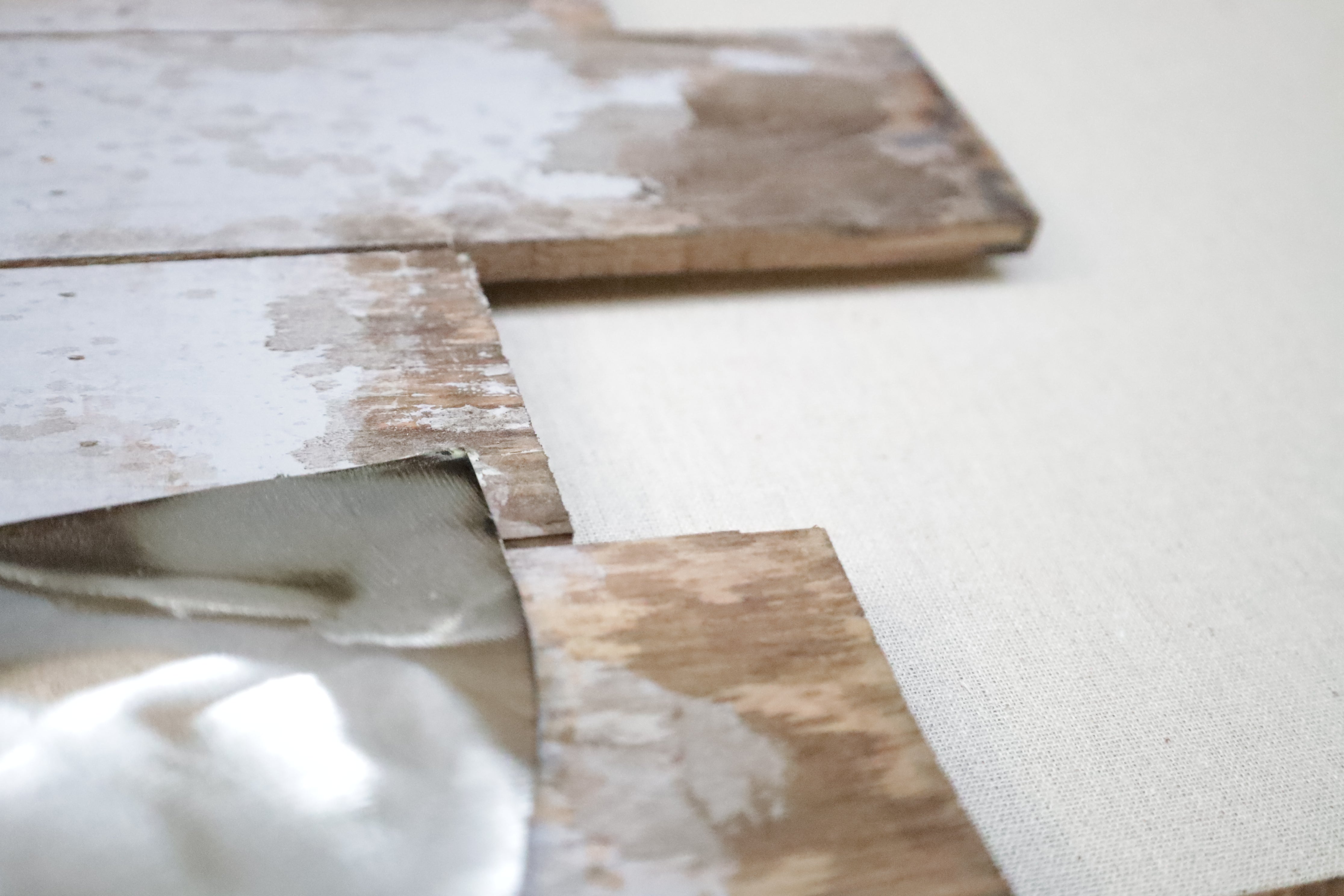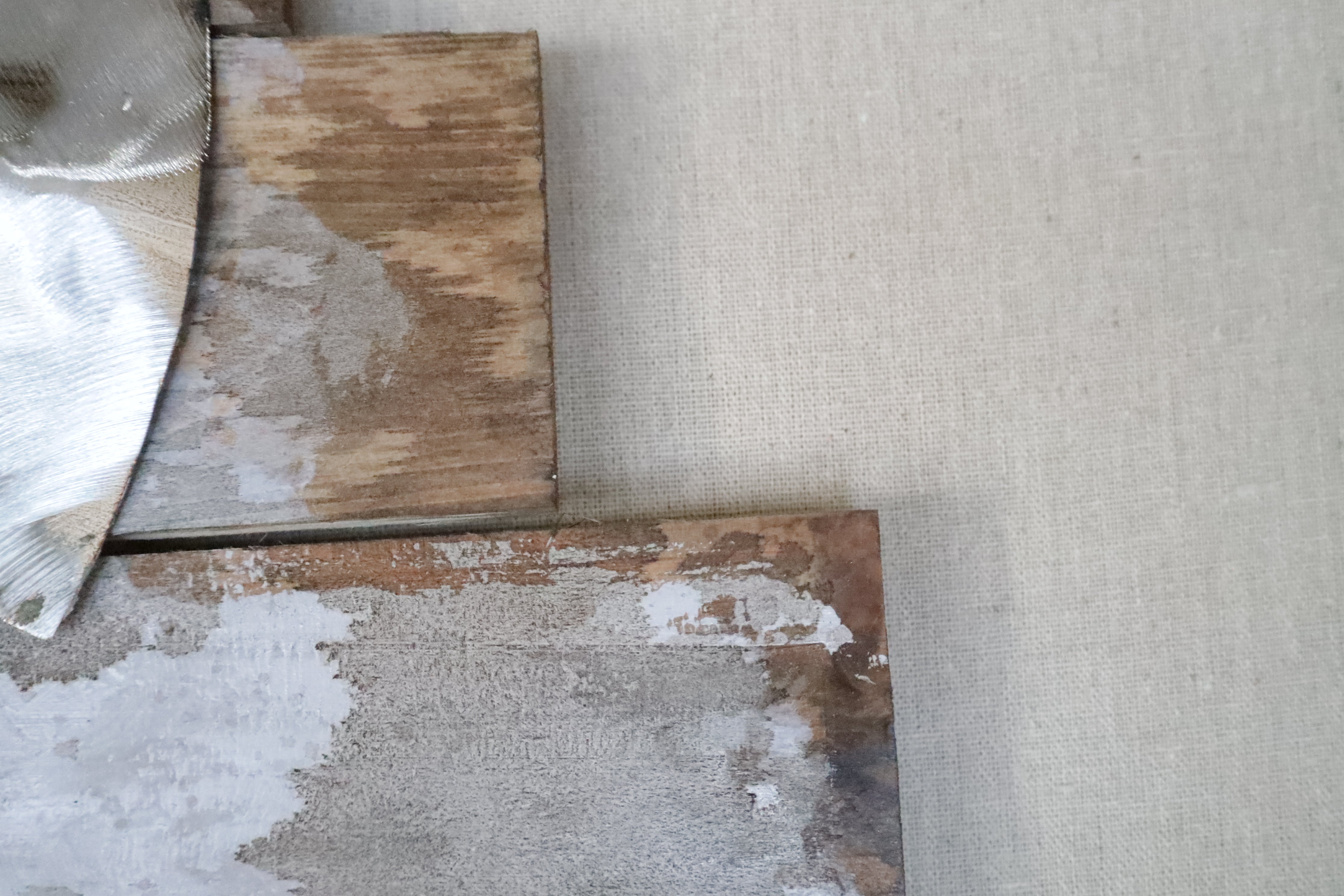 Het contrast tussen het gladde metaal, de ruwe houtstructuur en de zachte canvas-achtergrond maakt Rusty Tide tot een intrigerende blikvanger. De witte lijst omlijst het geheel op subtiele wijze en zorgt voor een rustige balans in het ontwerp.
