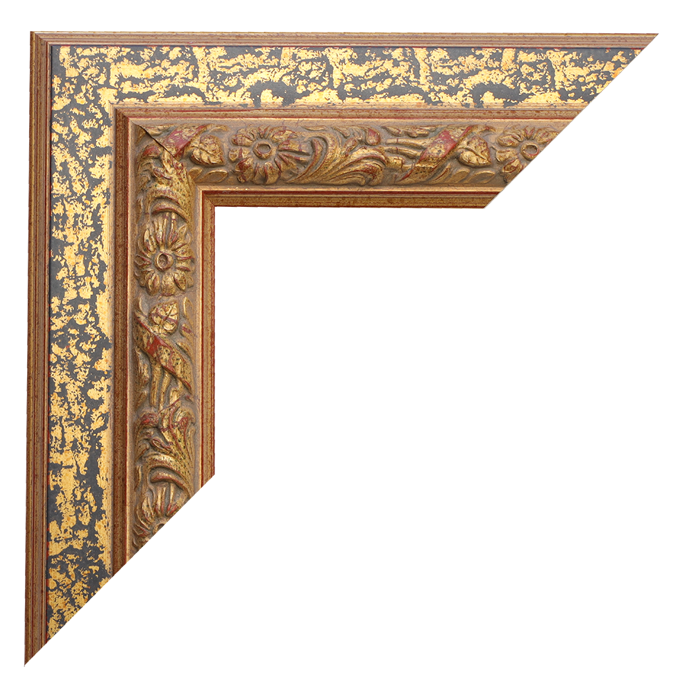 Italiaanse houten lijst in barokstijl, 90 mm breed en 40 mm hoog, goud met speelse details.